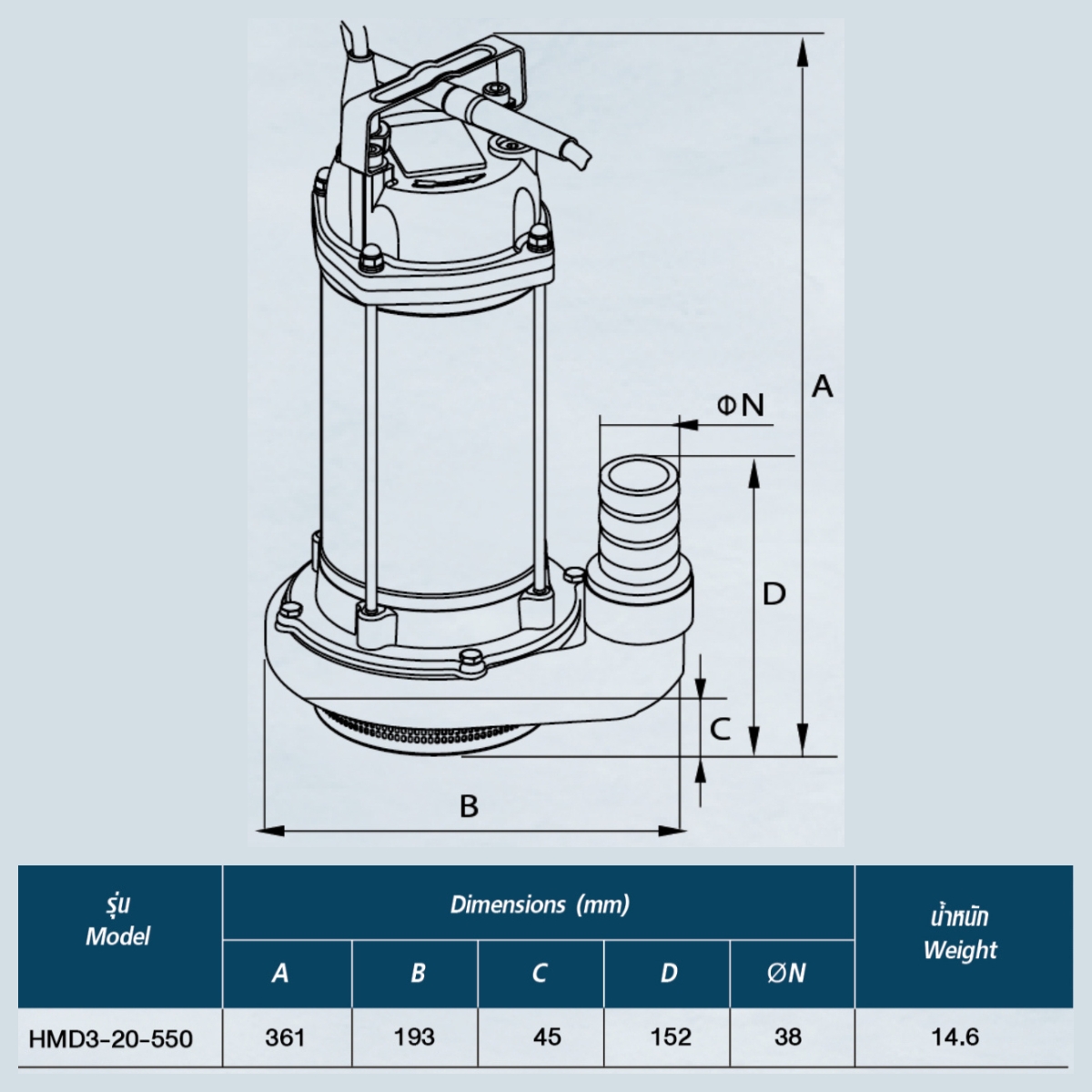| ขนาดท่อทางส่ง | 1.5 นิ้ว |