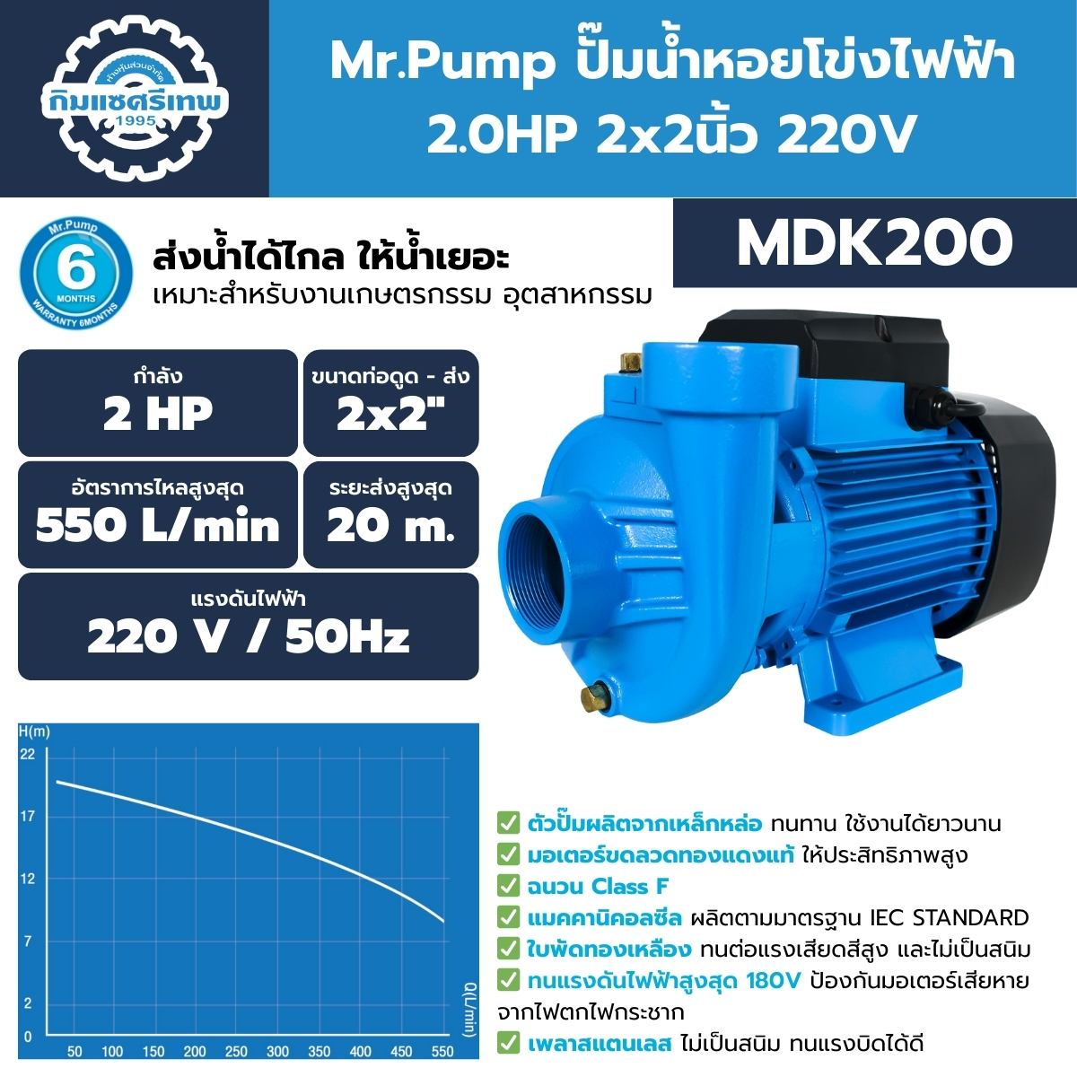 ปั๊มน้ำหอยโข่งไฟฟ้า 2.0HP 2x2นิ้ว 220V มิสเตอร์ปั๊ม รุ่น MDK200