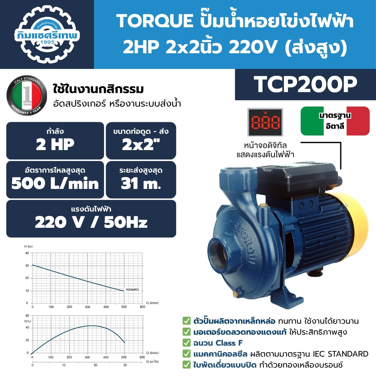 ปั๊มน้ำหอยโข่งไฟฟ้า 2HP ท่อ 2"x2" TORQUE รุ่น TCP200P