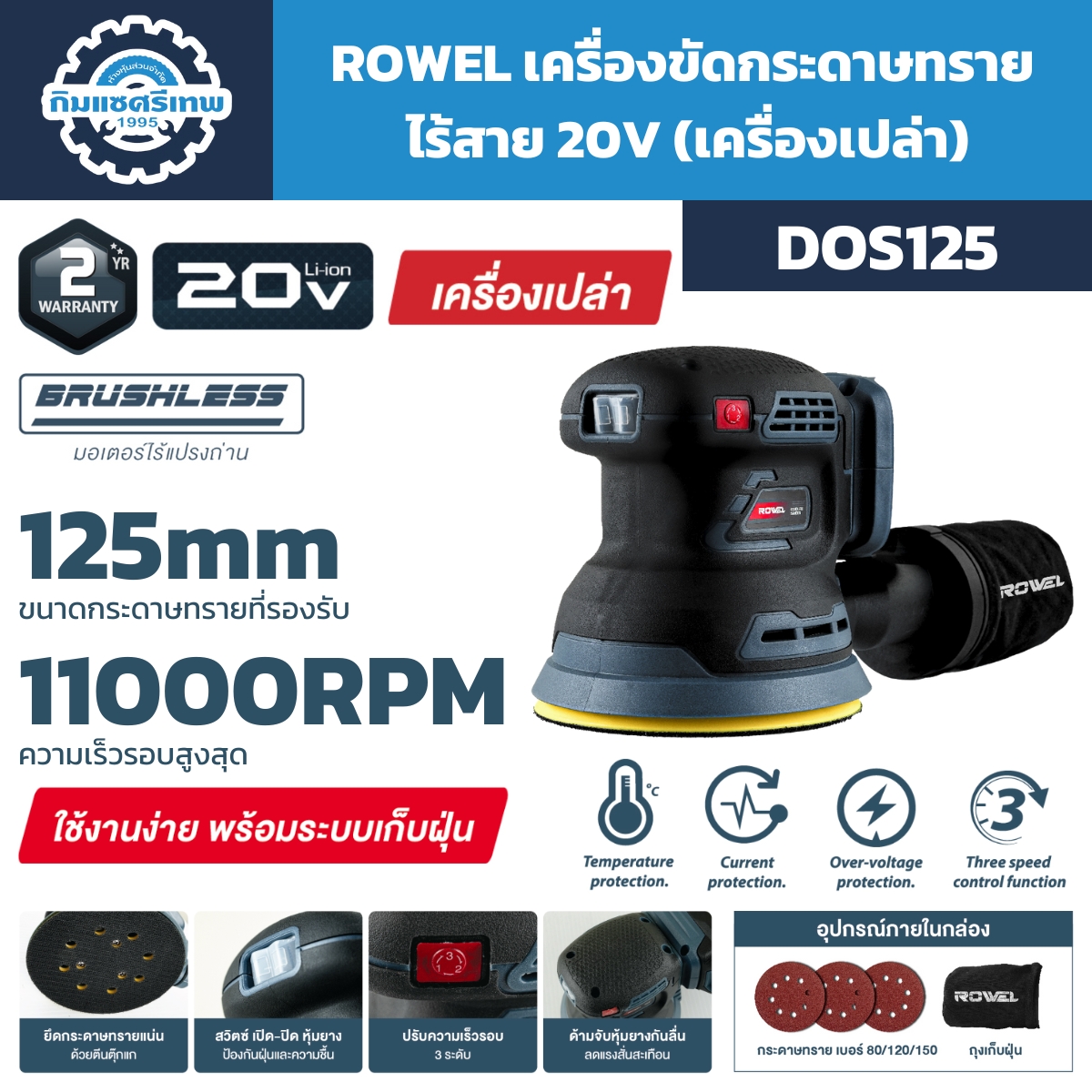 เครื่องขัดกระดาษทรายไร้สาย 20V ROWEL รุ่น DOS125 (เครื่องเปล่า)