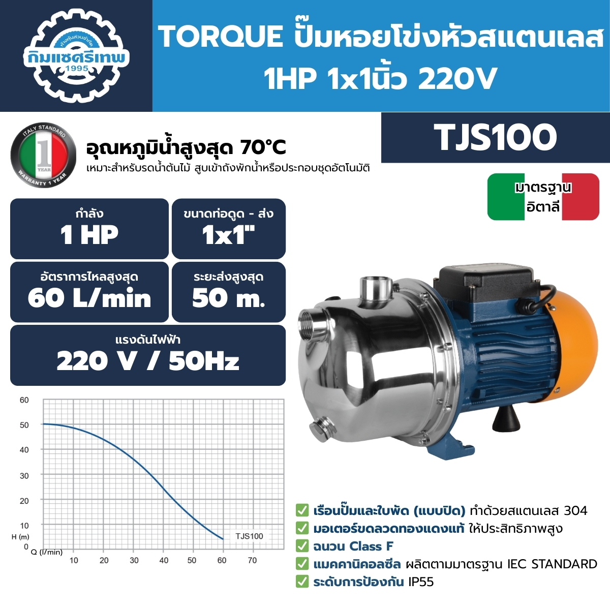 ปั๊มหอยโข่งหัวสแตนเลส 1HP 1x1นิ้ว 220V ทอร์ค รุ่น TJS100