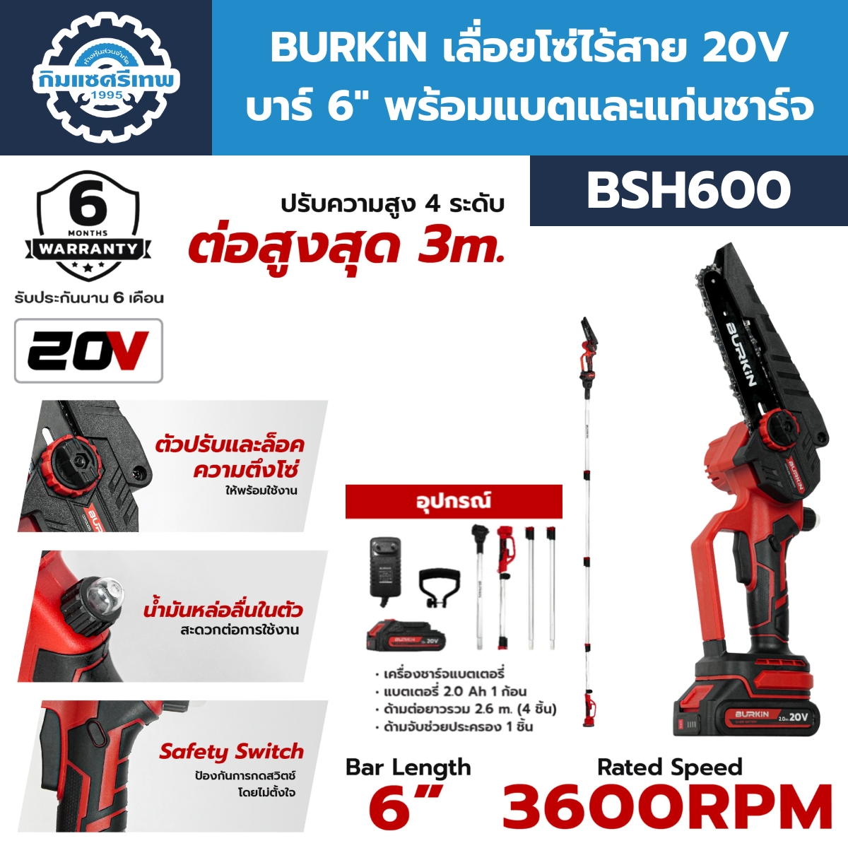 - 1 X เลื่อยโซ่ไร้สาย 6" 20V BURKiN BSH600