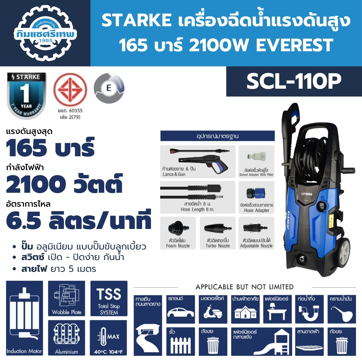 เครื่องฉีดน้ำแรงดันสูง 165 บาร์ 2100W STARKE รุ่น EVEREST (SCL-110P)
