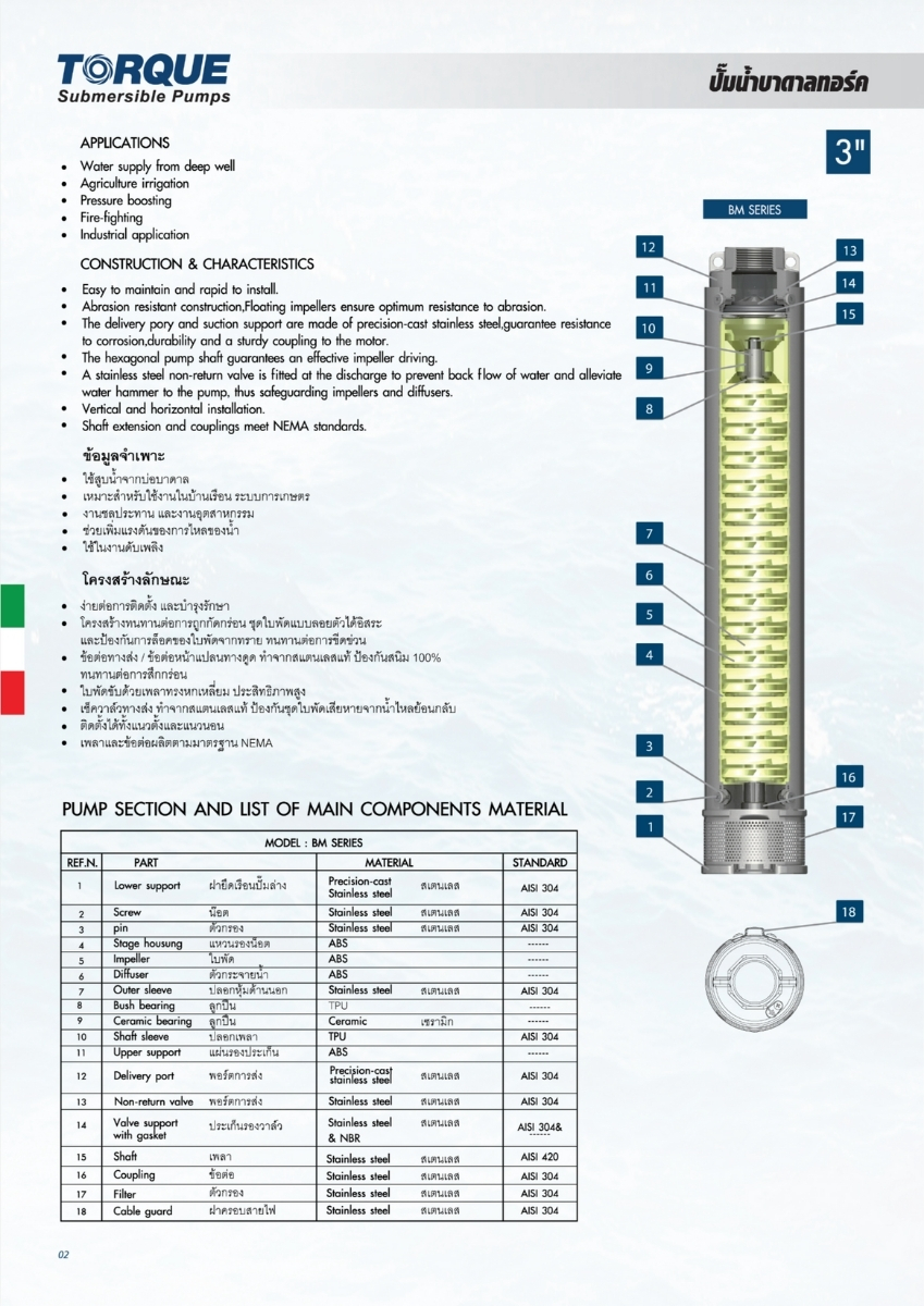 ปั๊มบาดาลทอร์คแตกต่างด้วยประสิทธิภาพที่ไม่เหมือนใคร มาตรฐานการผลิตระดับสากล โครงสร้างวัสดุและส่วนประกอบของตัวปั๊มถูกออกแบบโดยนวัตกรรมจากอิตาลี