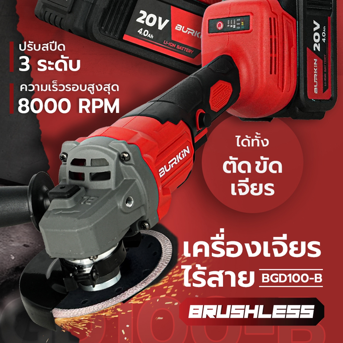 เครื่องเจียรไร้สาย 4" 20V BURKiN รุ่น BGD100