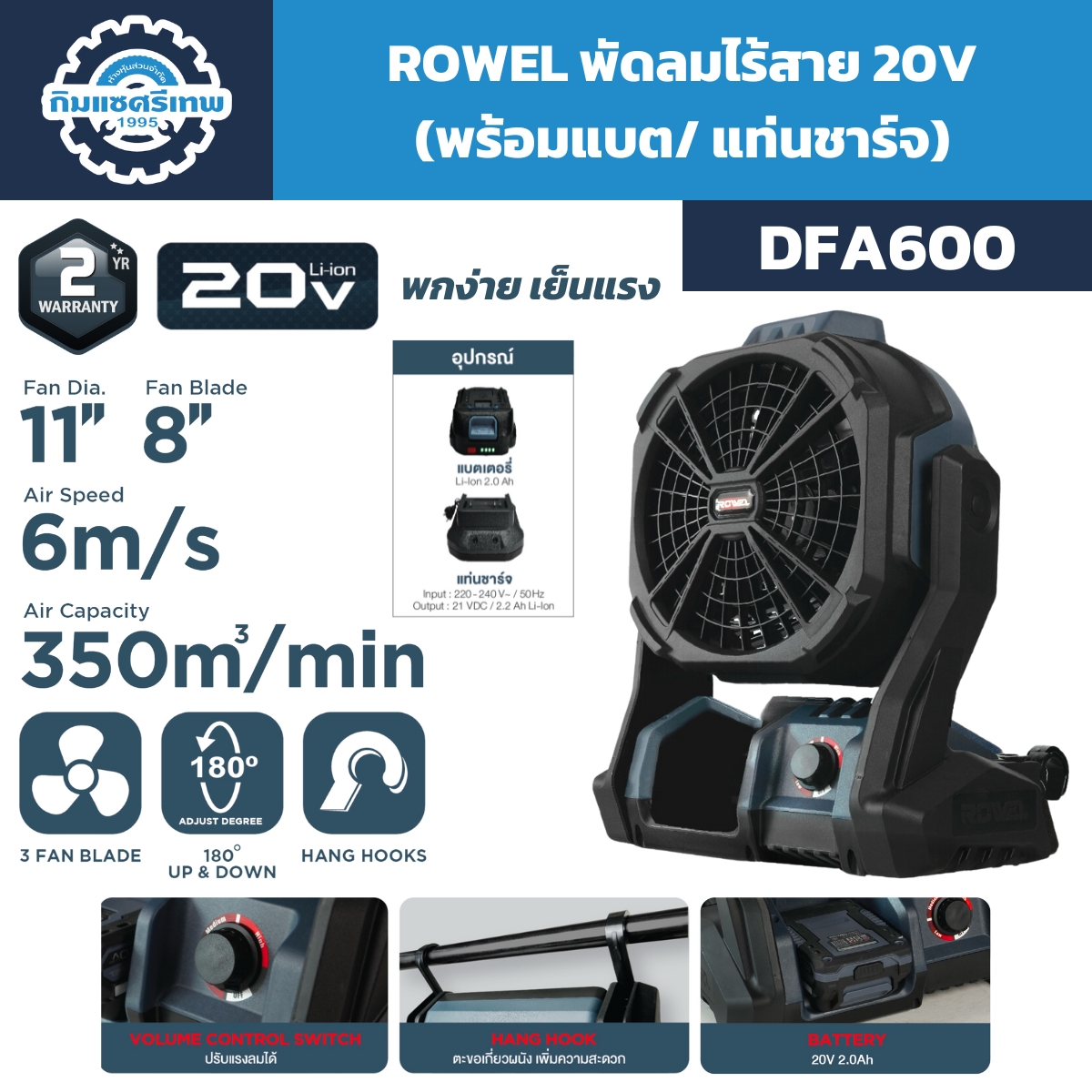 ROWEL พัดลมไร้สาย 20V รุ่น DFA600