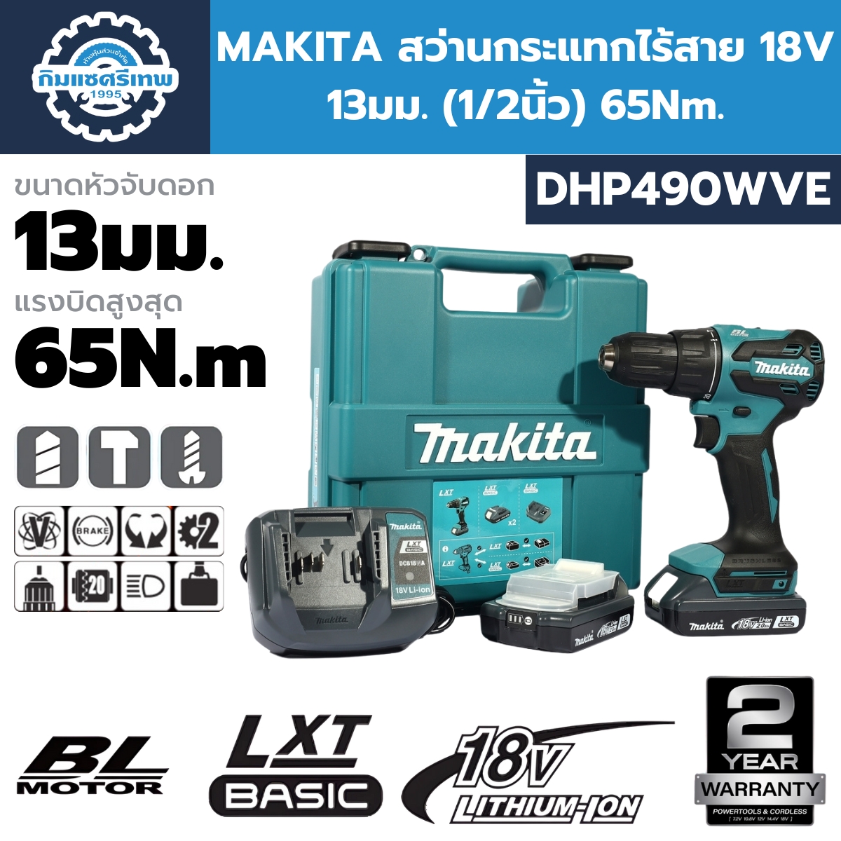 สว่านกระแทกไร้สาย 18V 1/2" 65N.m มากีต้า รุ่น DHP490WVE