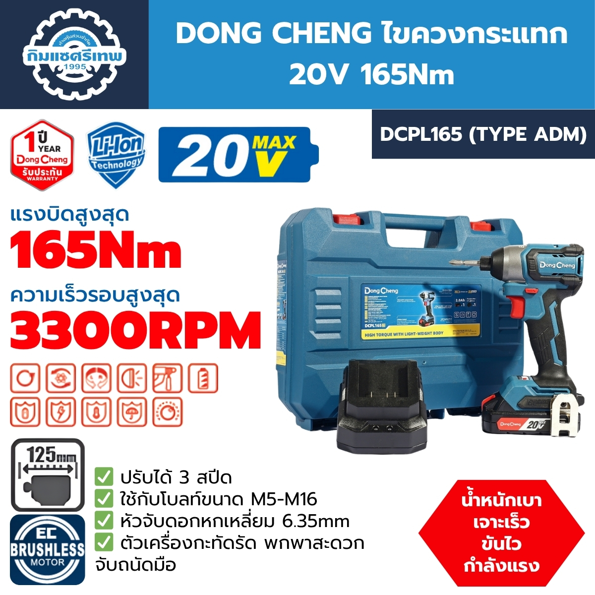 ไขควงกระแทกไร้สาย 20V (ดองเช็ง) DONG CHENG รุ่น DCPL165 (มอเตอร์ไร้แปรงถ่าน)