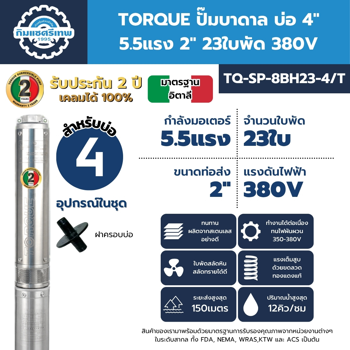 ปั๊มบาดาลทอร์คแตกต่างด้วยประสิทธิภาพที่ไม่เหมือนใคร มาตรฐานการผลิตระดับสากล โครงสร้างวัสดุและส่วนประกอบของตัวปั๊มถูกออกแบบโดยนวัตกรรมจากอิตาล