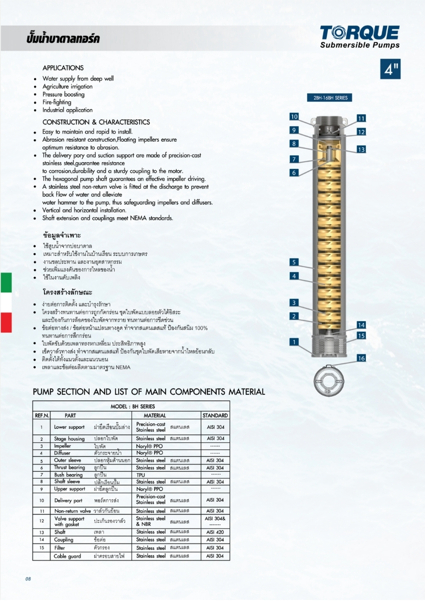 ปั๊มบาดาลทอร์คแตกต่างด้วยประสิทธิภาพที่ไม่เหมือนใคร มาตรฐานการผลิตระดับสากล โครงสร้างวัสดุและส่วนประกอบของตัวปั๊มถูกออกแบบโดยนวัตกรรมจากอิตาล