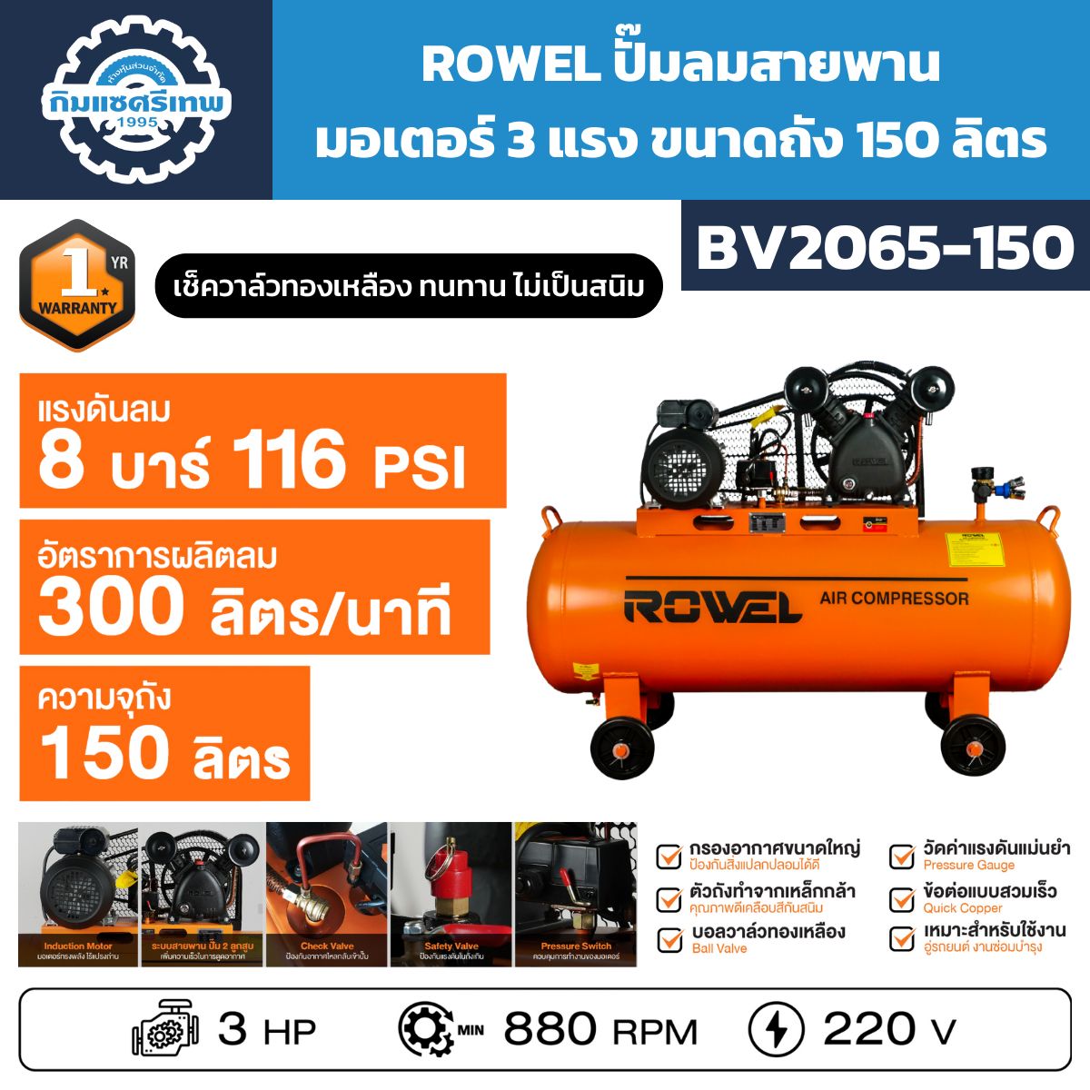ปั๊มลมสายพาน มอเตอร์ 3HP ถัง 150L โรเวล (ROWEL) รุ่น BV2065-150