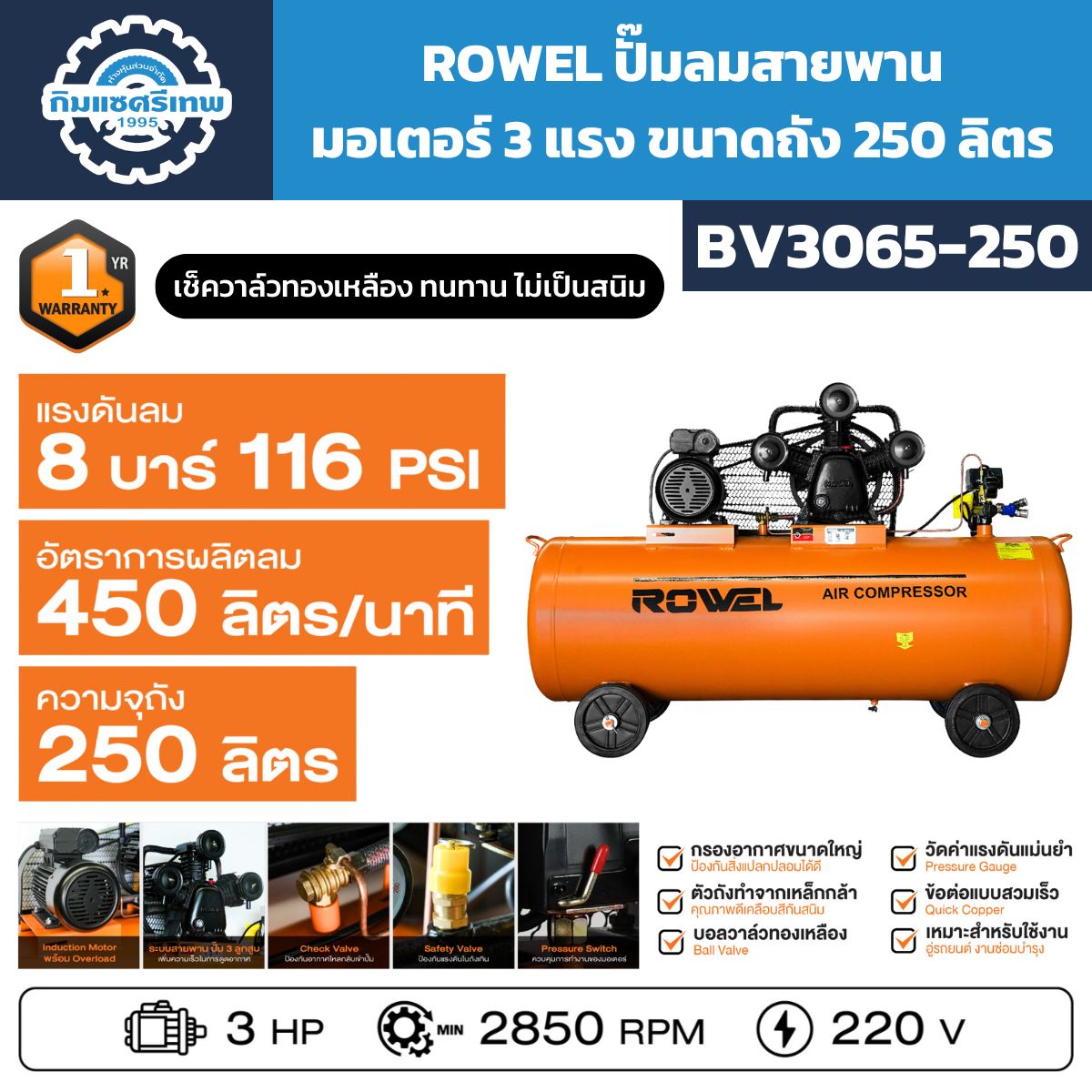 ปั๊มลมสายพาน มอเตอร์ 3HP ถัง 250L โรเวล (ROWEL) รุ่น BV3065-250