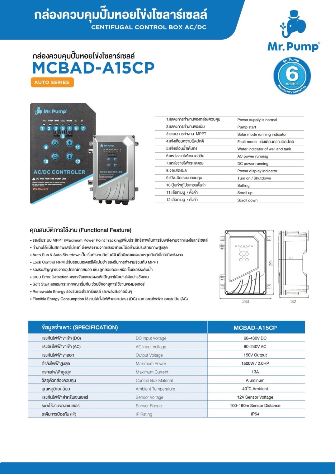 Mr.Pump ชุดปั๊มหอยโข่ง AC/DC 1500W 3" พร้อมกล่องคอนโทรล รุ่น MPH320-D/S